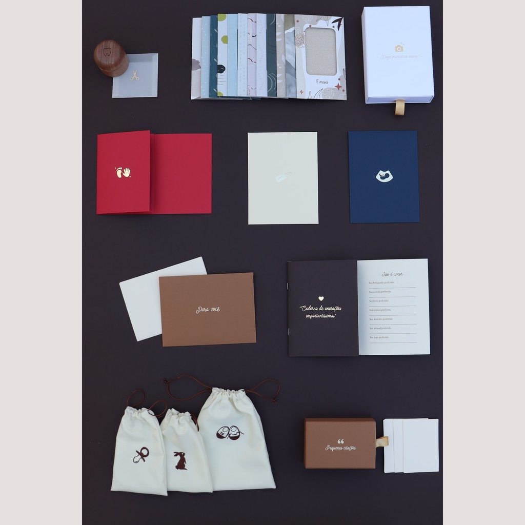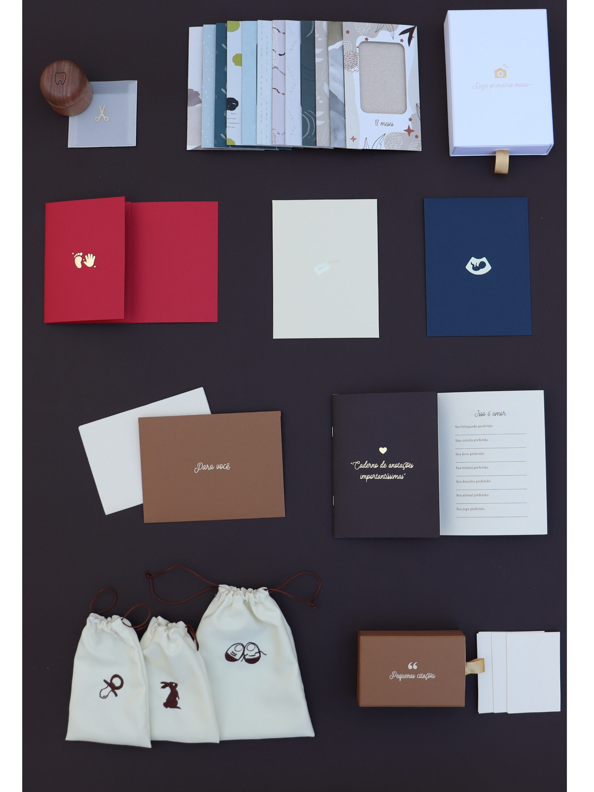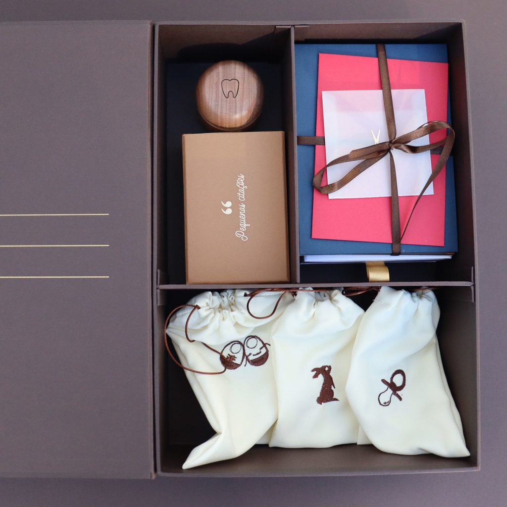 A caixa  foi projetada por artesãos experientes e é feita de papel cartonado rígido com acabamento em papel luxuoso com toque sofisticado de linho. Por dentro há compartimentos inteligentemente projetados para acomodar lembranças desde o primiero fio de cabelo até o primeiro dentinho caído e as primeiras frases faladas de uma forma discomplicada. Possui fechamento magnético resistente.